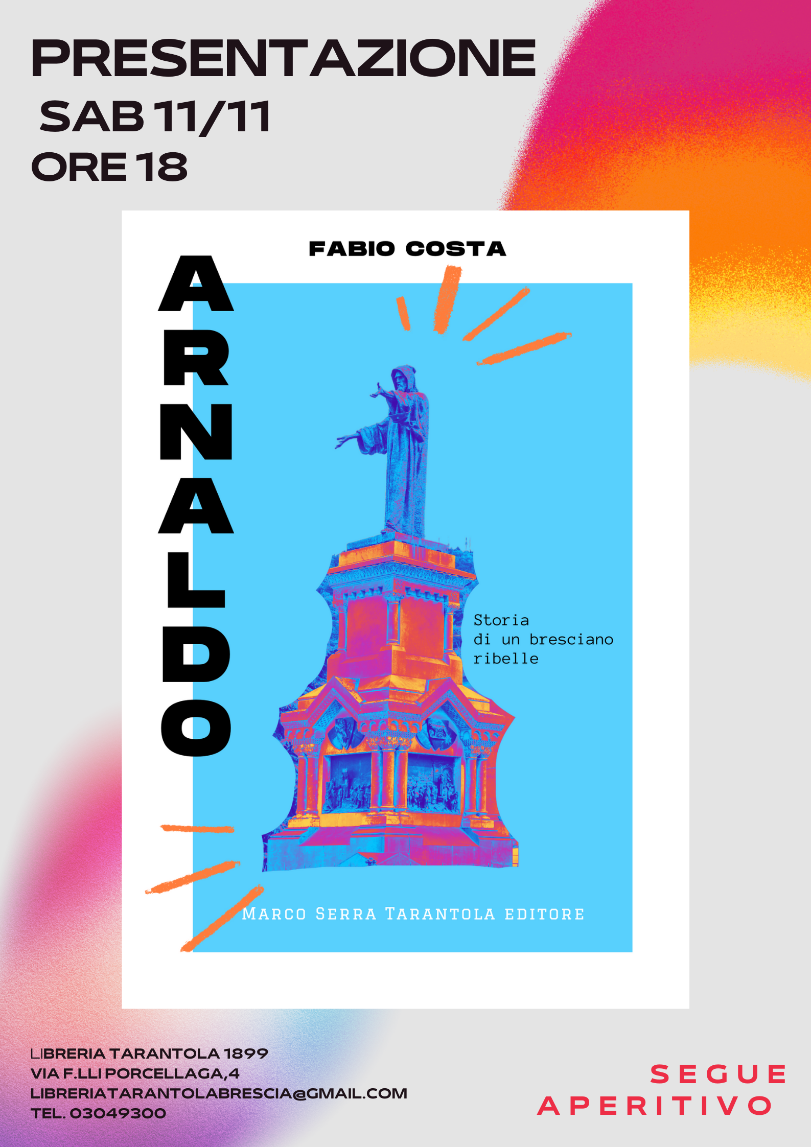 Sabato alle ore 18 presentazione del libro “Arnaldo. Storia di un bresciano ribelle” di Fabio Costa, Marco Serra Tarantola editore.