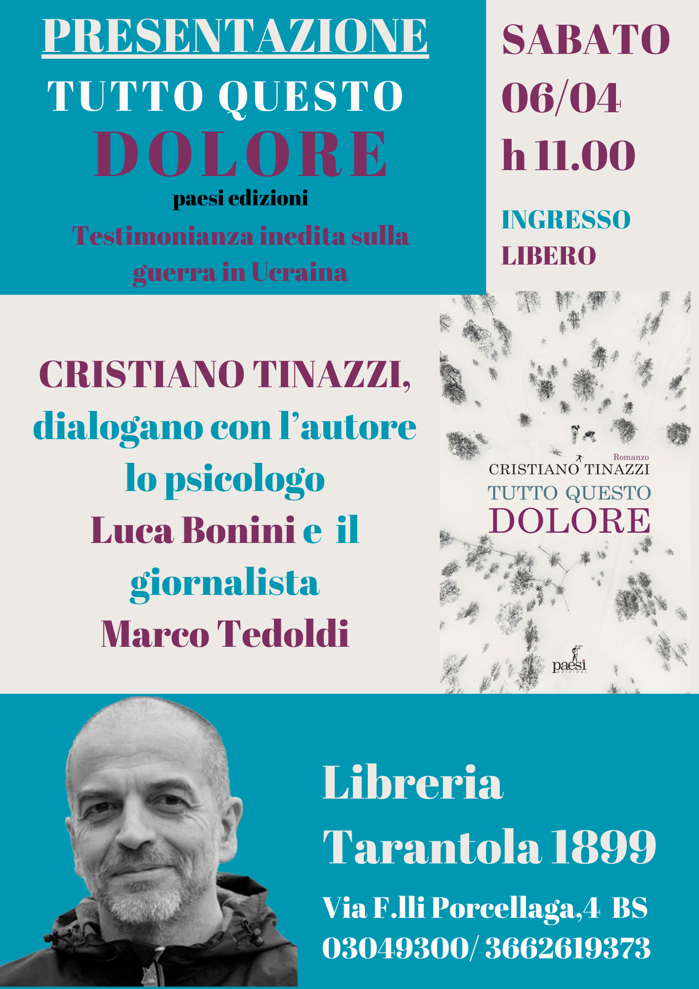 Sabato 6 Aprile, alle ore 11 presentazione del libro “Tutto questo dolore” di Cristiano Tinazzi. Una testimonianza inedita sulla guerra in Ucraina.