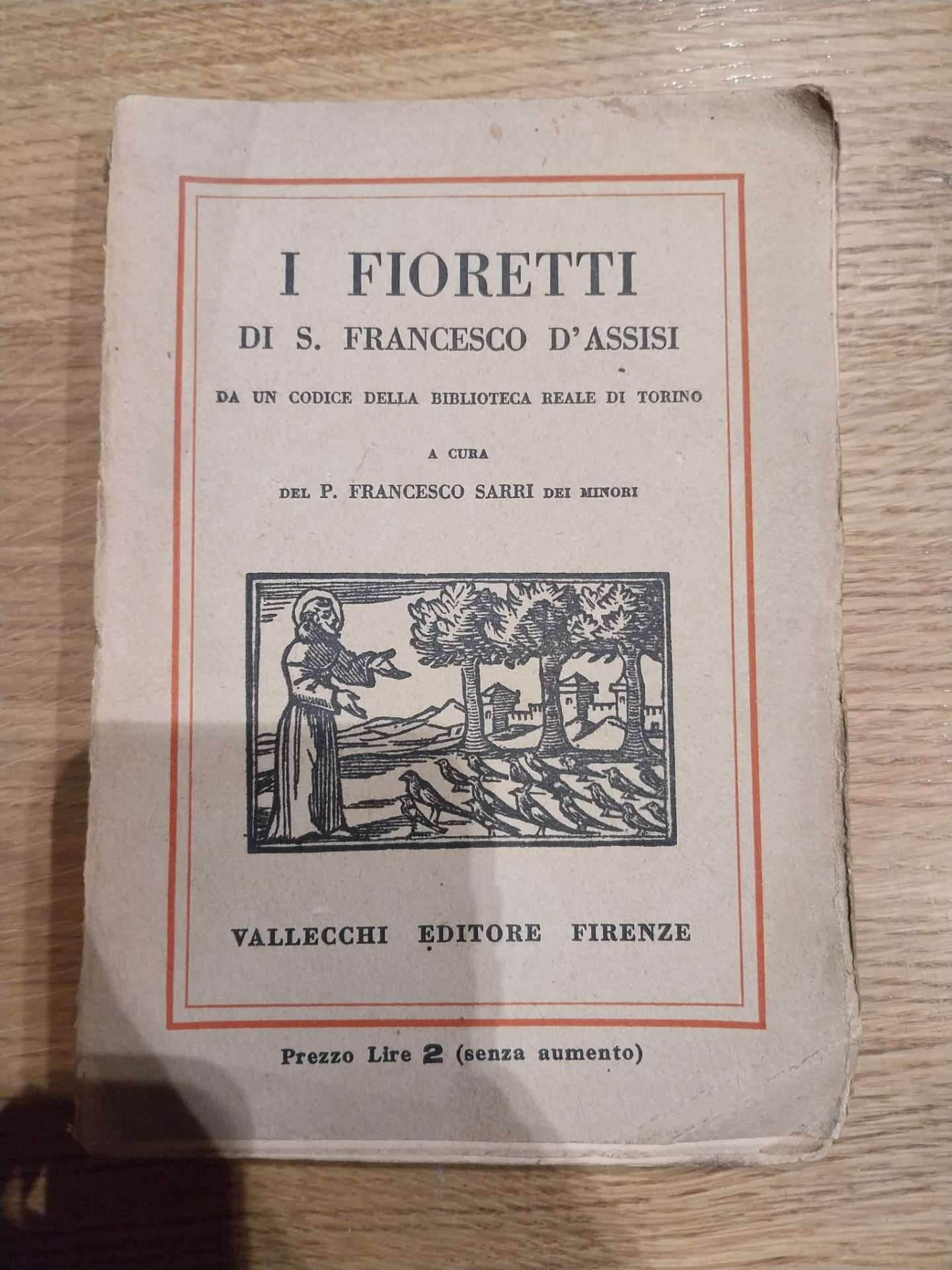 Raccolta di aneddoti di San Francescio d’Assisi in condizioni pessime (copertina rotta e libro diviso a metà).