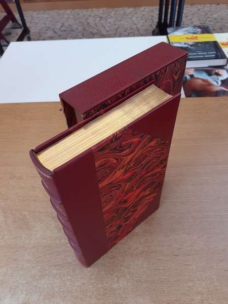 • Copertina: Rilegatura Rigoldi in pelle e carta marmorizzata con custodia. Taglio superiore con 19 passaggi d'oro.